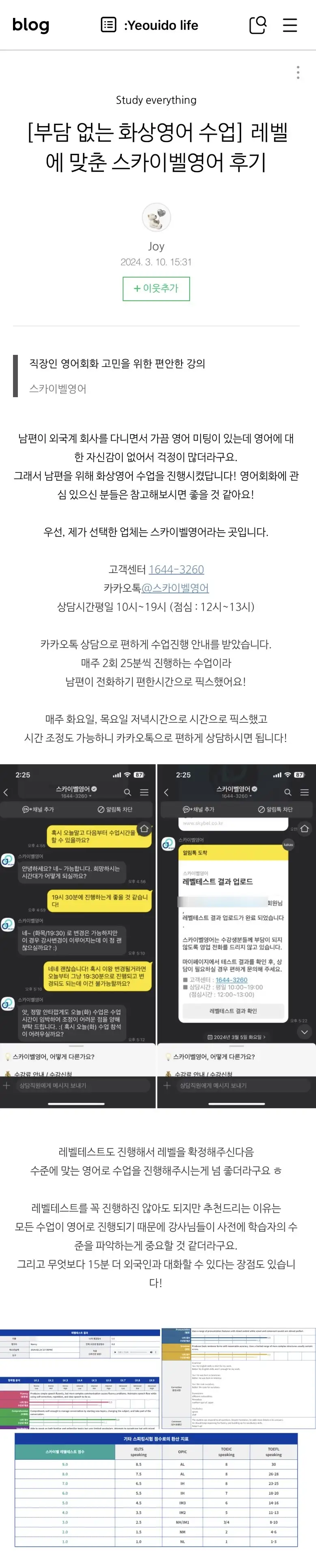 [부담 없는 화상영어 수업] 레벨에 맞춘 스카이벨영어 후기
