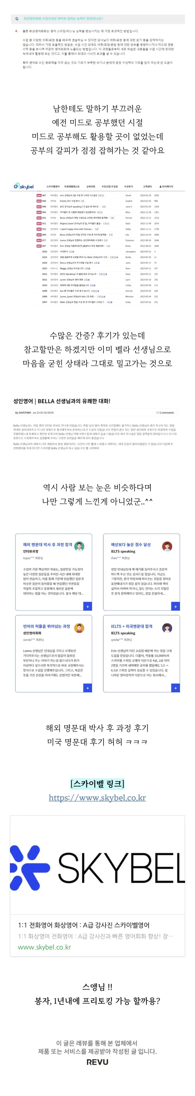영어스피킹은 엉덩이 싸움도 중요하지만, 즐거운 대화가 이어질 때 비약적으로 상승합니다. 회원님의 새로운 도전을 스카이벨이 온 마음 다해 응원합니다!
