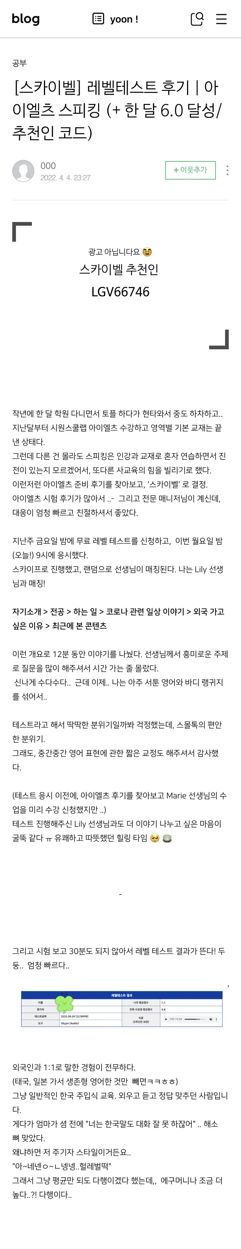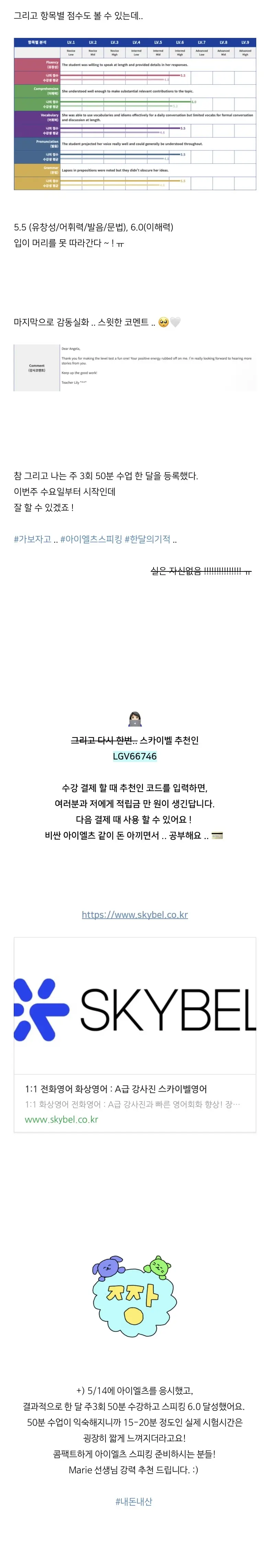 [스카이벨] 레벨테스트 후기 | 아이엘츠 스피킹 (+ 한 달 6.0 달성/추천인 코드)