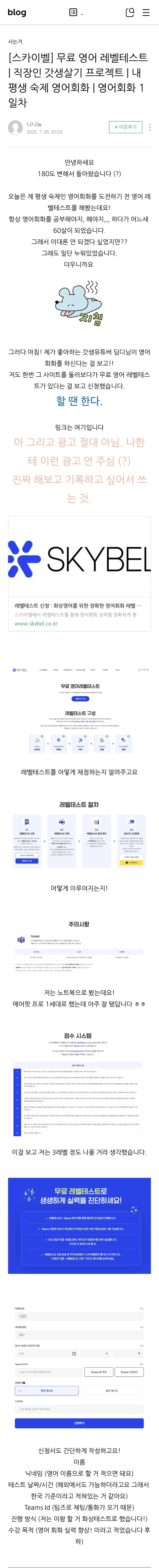 [스카이벨] 무료 영어 레벨테스트 | 직장인 갓생살기 프로젝트 | 내 평생 숙제 영어회화 | 영어회화 1일차