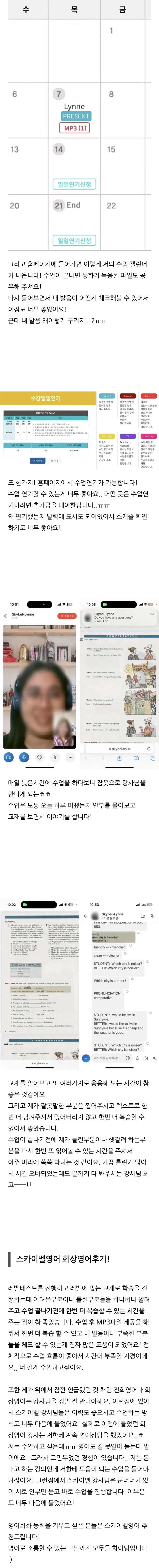 화상영어에서 가장 중요한 건 역시 강사님이죠! 예전 타 업체에서 수업 시간 내내 강사님의 연애 상담만 듣다 지치셨던 아픈 기억... 하지만 스카이벨의 Lynne 강사님은 다릅니다. 군더더기 없는 안부 인사 후 바로 수업에 집중하며, 시간이 오버되어도 틀린 부분을 끝까지 봐주시는 열정을 보여주셨습니다.