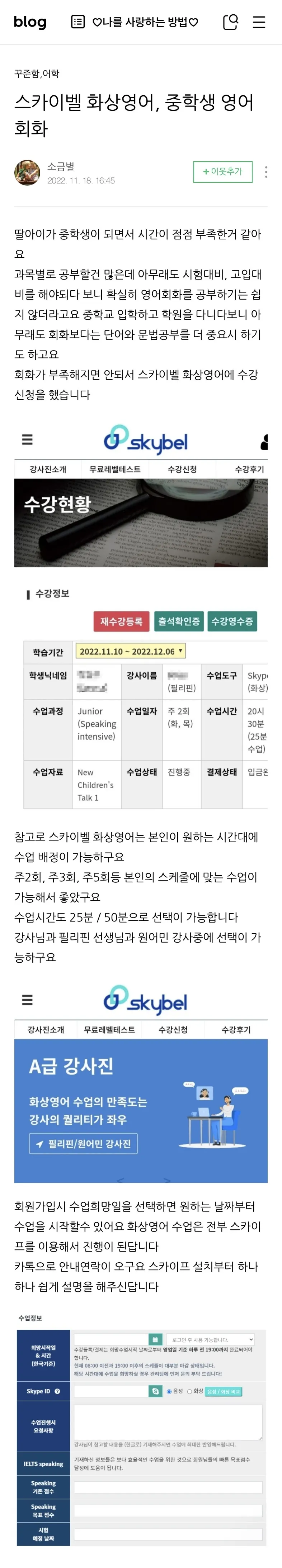"영어는 시험도 중요하지만 결국 외국인과 소통이 되어야 한다"는 어머님의 교육 철학, 저희 스카이벨이 끝까지 함께 지켜나가겠습니다.