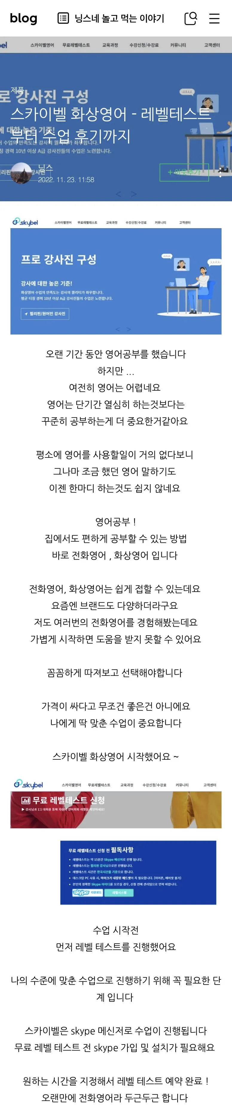 스카이벨 화상영어 - 레벨테스트부터 수업 후기까지