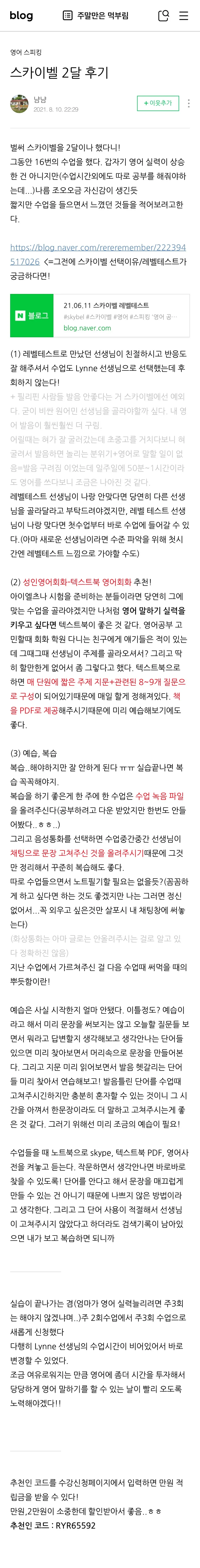 조금씩 생겨나는 자신감을 바탕으로 최근에는 수업 횟수까지 늘리며 더 높은 목표를 향해 달리고 계십니다. 추천인 적립금 혜택까지 알뜰하게 챙기며 즐겁게 공부하시는 모습에 저도 덩달아 힘이 나네요.