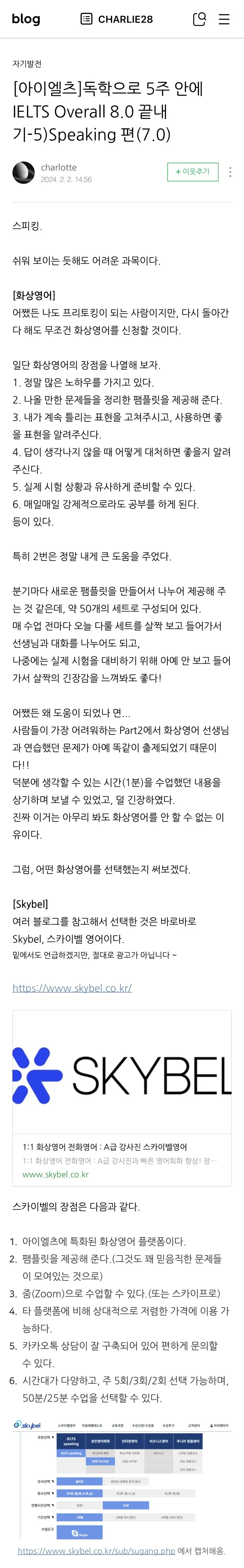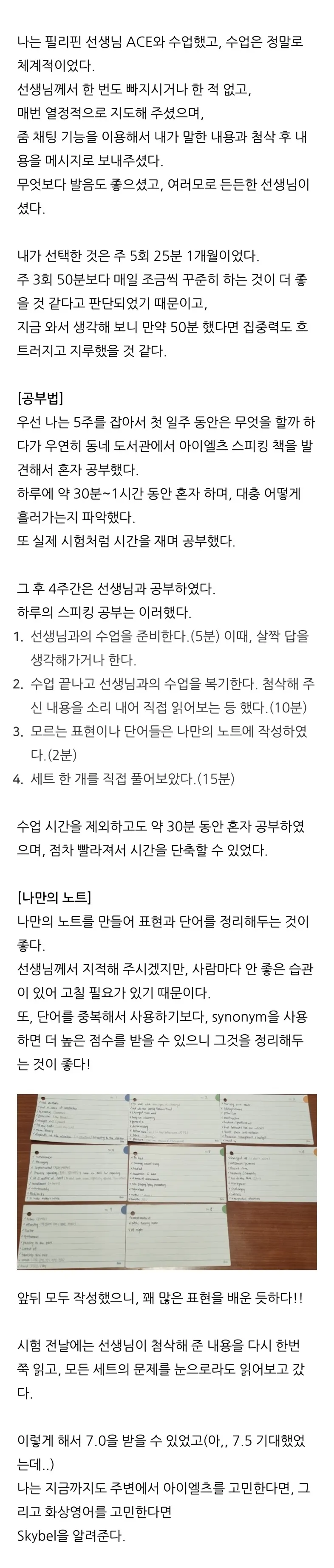 이미 프리토킹이 가능한 실력임에도 불구하고 "다시 돌아가도 무조건 화상영어를 선택하겠다"고 말씀해주신 회원님의 확신에 깊은 감동을 느낍니다. 고득점을 향한 회원님의 치밀한 공부법을 다시 한번 정리했습니다.