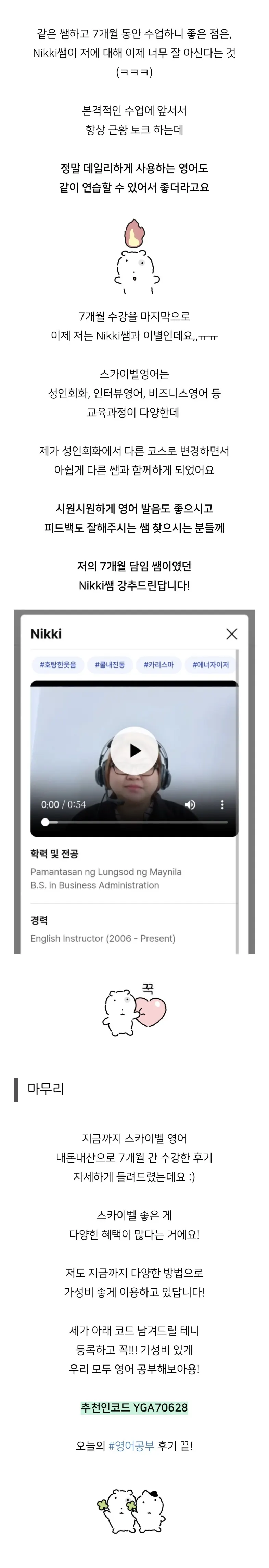 여러분의 꾸준한 도전을 스카이벨화상영어가 곁에서 묵묵히 응원하겠습니다!
