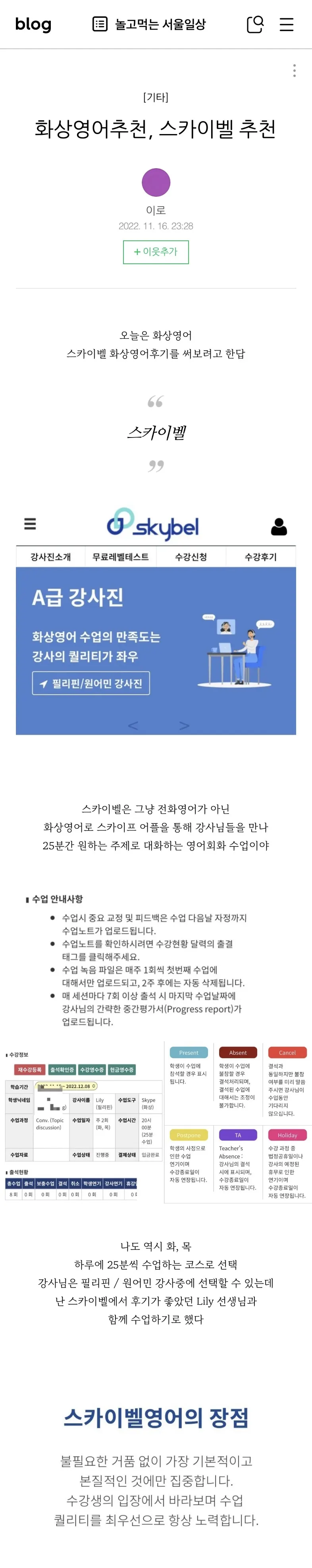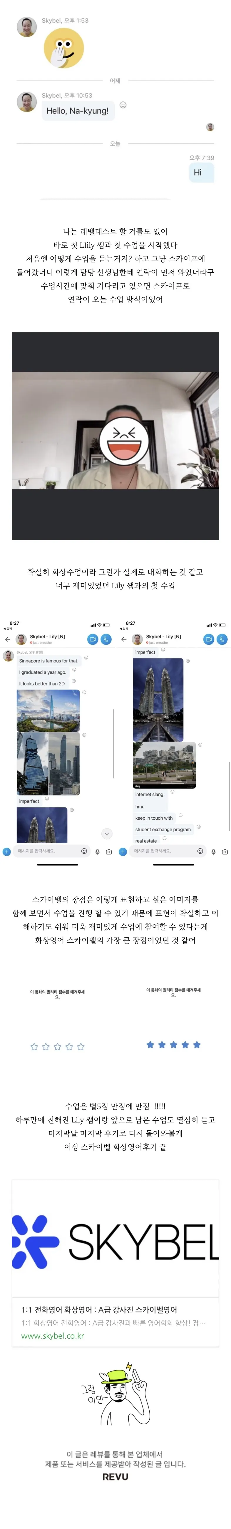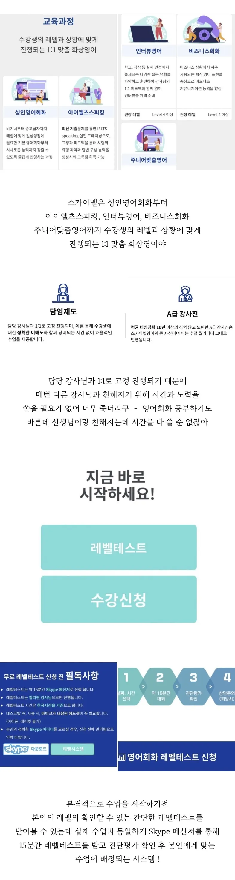"영어회화 공부하기도 바쁜데 선생님과 친해지는 데 시간을 쓸 순 없다"는 회원님의 명언처럼, 스카이벨은 효율적인 학습을 지향합니다. 마지막 수업 날 더 성장해 있을 회원님의 영어회화공부 여정을 끝까지 응원하겠습니다!