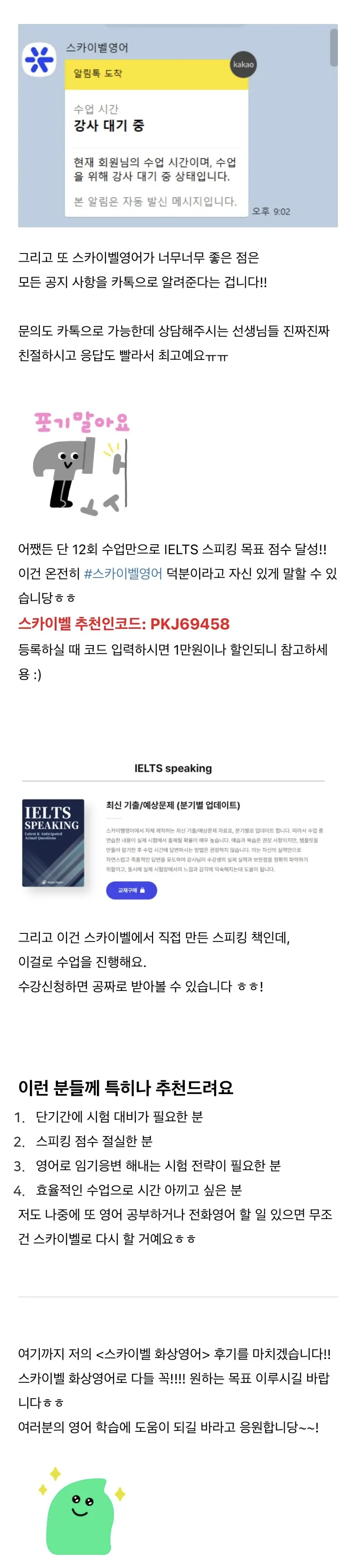 [화상영어 추천] 초대박 벼락치기로 IELTS 아카데믹 스피킹 준비하기 - 내돈내산 전화영어 skybel 상세 후기